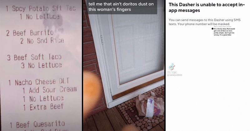 A DoorDash driver was caught orange-handed stealing a Taco Bell order as seen in a viral TikTok video.